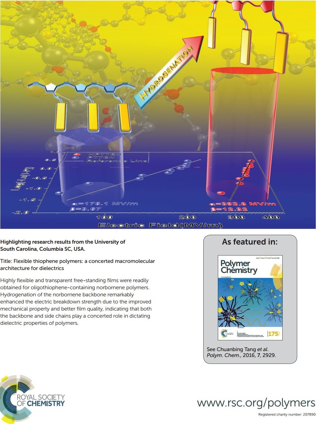 Yin X.; Qiao Y.; Gadinski M. R.; Wang Q.; Tang C.* Flexible Thiophene Polymers: A Concerted Macromolecular Architecture for Dielectrics. Polym. Chem., 2016, 7, 2929–2933.