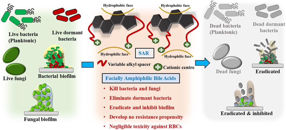 Barman S.; Kurnaz L.; Yang X.; Nagarkatti M.; Decho A.*; Tang C.*; Facially Amphiphilic Bile Acid-Functionalized Antimicrobials: Combating Pathogenic Bacteria, Fungi, and Their Biofilms. ACS Infect. Dis. 2023, 9 (9), 1769 - 1782